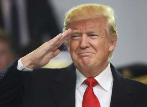 President Donald Trump salutes participants during the inaugural