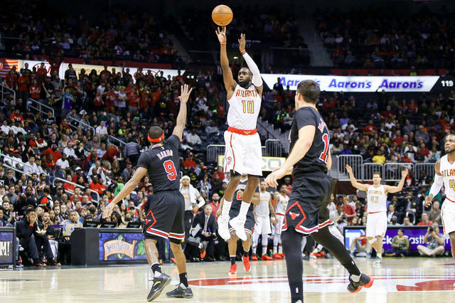 the Chicago Bulls in the first quarter at Philips Arena. Mandatory