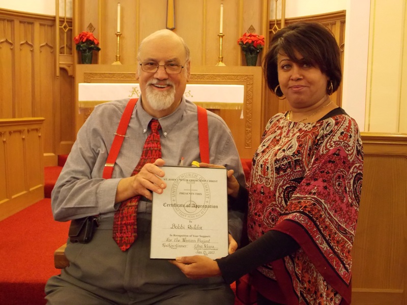 church and Outreach Ministry presents certificates of appreciation to Reddix and