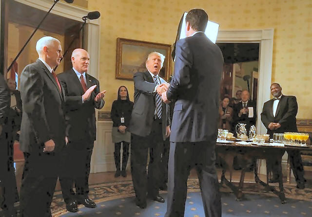 President Donald Trump greets Director of the FBI James Comey as U.S.