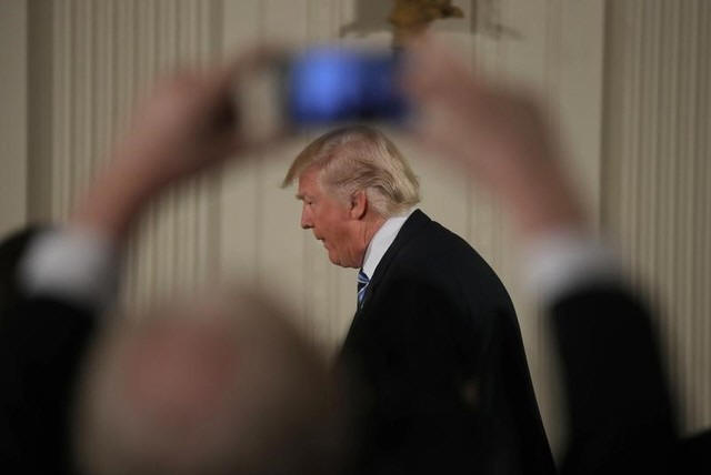 President Donald Trump arrives for a swearing-in ceremony for senior staff at the White House in Washington, DC January 22, 2017. REUTERS/Carlos Barria |