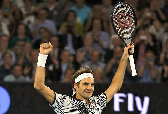 Switzerland's Roger Federer celebrates winning his Men's singles