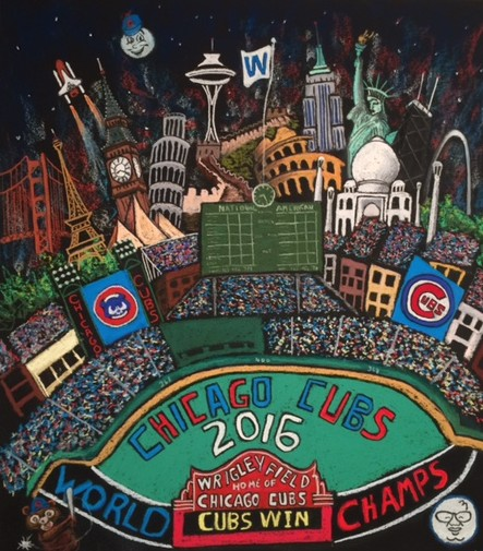 The paintings range from an eye-popping view of Wrigley Field to ivy