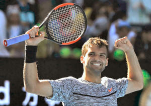 Bulgaria's Grigor Dimitrov celebrates after winning his Men's