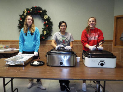 and gravy. Others worked to bus tables as dinners left and new