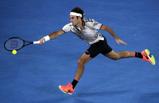 Switzerland's Roger Federer hits a shot during his Men's singles