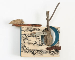 exhibit. Composed of man-made and natural objects with painted
