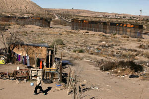 the U.S.-Mexico border fence is seen in the background at Anapra