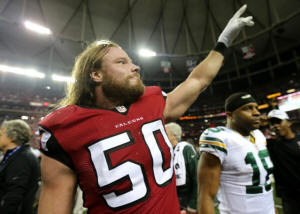Atlanta Falcons defensive end Brooks Reed (50) waves to the crowd