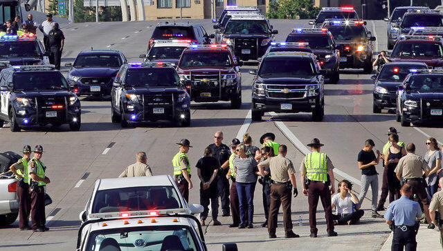 southbound lane of Interstate 35W in protest of the killing of