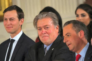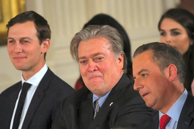 Senior staff at the White House (L-R) Jared Kushner, Steve Bannon