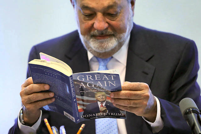Mexican billionaire Carlos Slim reads the book "Crippled America: