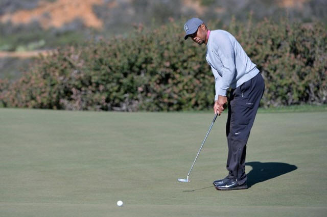Tiger Woods putts on the 12th green during the second round of the
