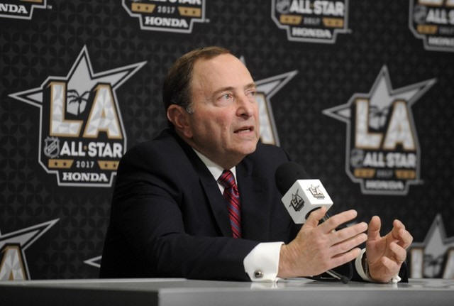NHL commissioner Gary Bettman speaks to media before the 2017 NHL