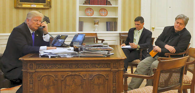 Security Advisor Michael Flynn (2nd R) and senior advisor Steve