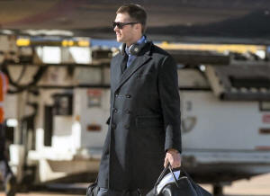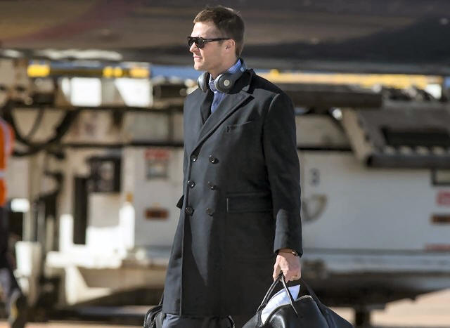 Patriots quarterback Tom Brady (12) arrives at George Bush