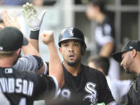 White Sox first baseman Jose Abreu (79) celebrates in the dugout