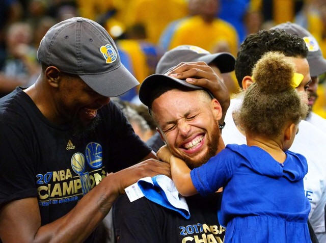 Golden State Warriors forward Kevin Durant (35), guard Stephen