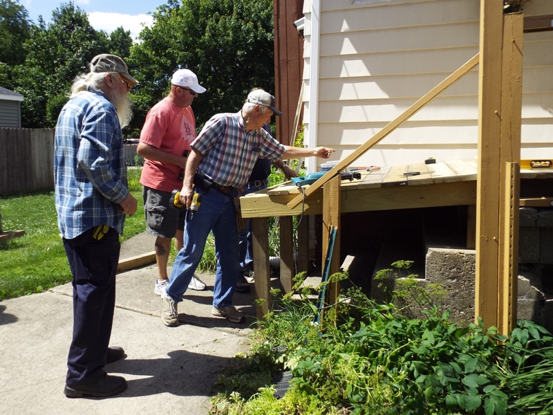 [June 30, 2017]   LINCOLN -  On Saturday several men from the Zion Lutheran Church gathered at the home of Charlie and Marge Ott to build a wheelchair ramp that will make it possible for Charlie and Marge to navigate in and out of their home.