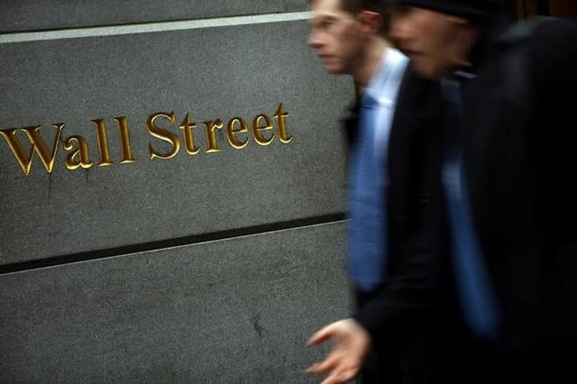 People walk past the New York Stock Exchange on Wall Street,