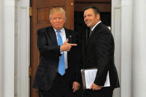 President-elect Donald Trump stands with Kansas Secretary of State
