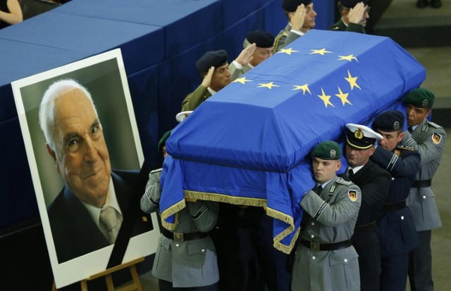 Helmut Kohl during of a memorial ceremony at the European Parliament