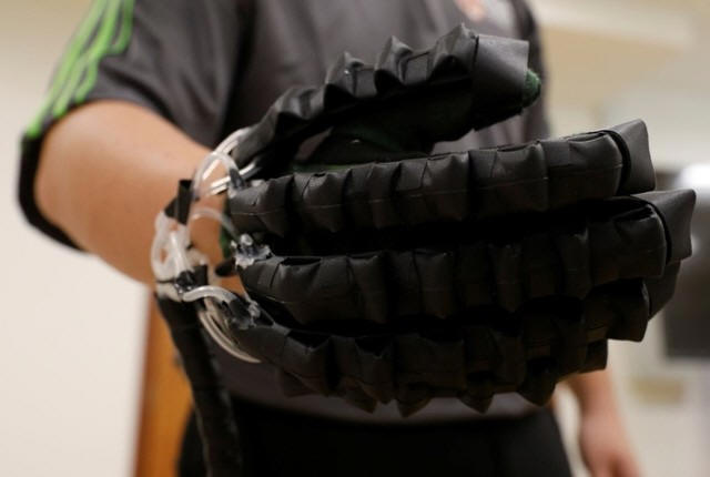 fabric-based soft robotic glove at NUS in Singapore June 8, 2017.