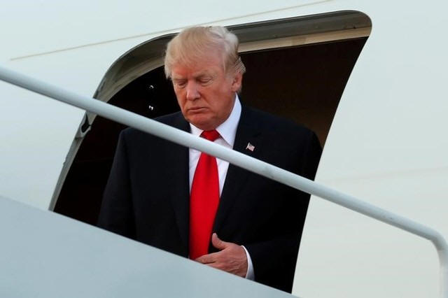 President Donald Trump arrives at Joint Base Andrews, Maryland,