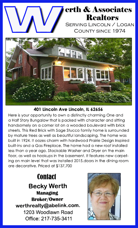 All real estate advertised in the Lincoln Daily News is subject to the Fair Housing Act for 1968 which makes it illegal to advertised "any preference, limitation, or discrimination based on race, color, religion, sex or national origin, or intention to make special preference, limitations, or discrimination."