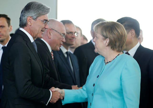 Siemens President and CEO Joe Kaeser shakes hands with German Chancellor Angela Merkel during a contract signing ceremony at the Chancellery in Berlin, Germany, July 5, 2017. REUTERS/Axel Schmidt |