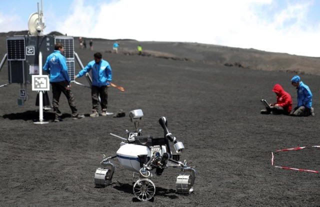 test some robots on the Mount Etna, Italy July 2, 2017. Picture