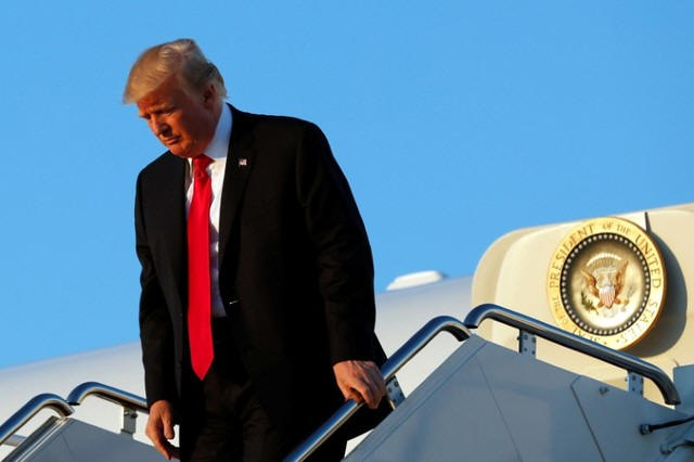 President Donald Trump arrives at Joint Base Andrews, Maryland as he