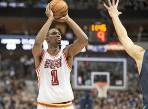 Miami Heat forward Chris Bosh (1) makes a jump shot against the