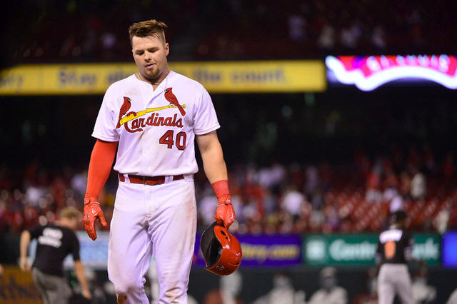 Cardinals first baseman Luke Voit (40) walks off the field after