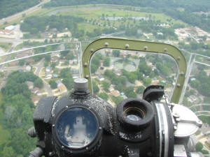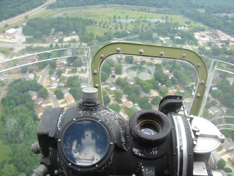 The most thrilling part of the ride was being invited to travel up to the front of the cockpit and crawl underneath to the Bombardier’s station. Sitting in the glass bubble one could just barely picture the scene in 1945 flying over enemy territory.