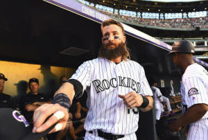 Rockies center fielder Charlie Blackmon (19) in the dugout in the