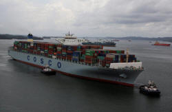 The container ship COSCO Development is seen as its became the
