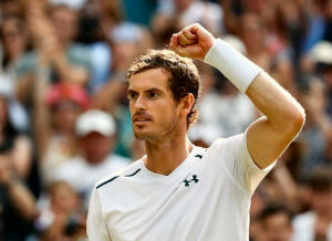 Great Britain’s Andy Murray celebrates after winning the fourth