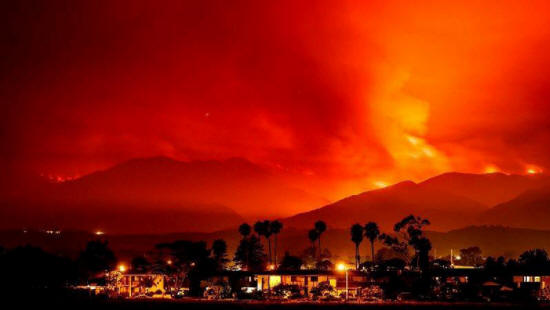 is illuminated by the Whittier wildfire near Santa Ynez,