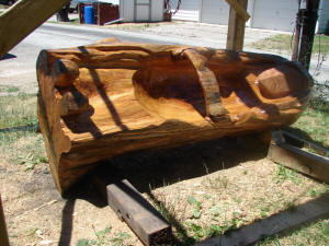 He said that some person trying to dispose of a giant tree trunk dropped it at the doorstep of a sculpture studio, and an artist took it from there. The project was completed in about two months. It is coated with a two-part epoxy resin that will make it weather proof.