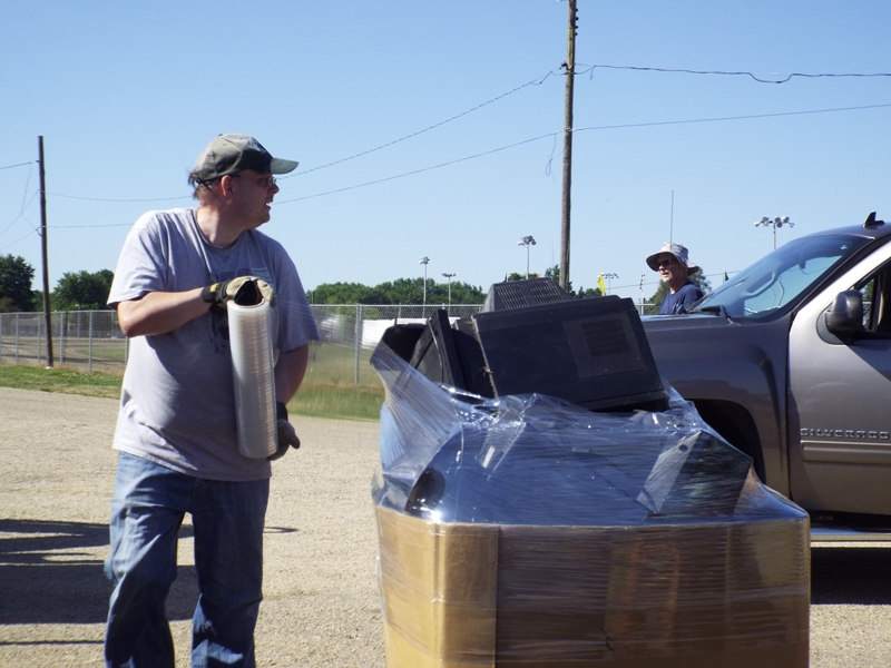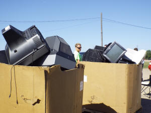 The event was open to all Logan County residents, and Rohlfs spent the most of her time checking identification, assuring that only local households were permitted to take advantage of the free offering. There were other rules that had to be followed as well. No more than five pieces per household, and TVs or computer monitors with broken screens or exposed CRT (Cathode Ray Tubes) were not accepted.