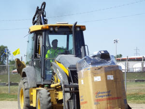 The city of Lincoln provided some labor for the event, including city employees who were paid to operate the front end loader that would stack the large cardboard cartons in the trailers as they were filled.