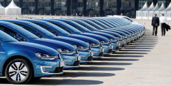 of Volkswagen e-Golf cars during the company's annual news