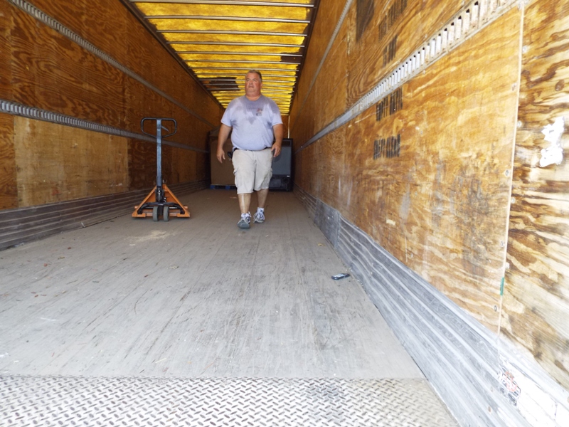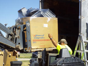The vehicles were then pulled up, and volunteers unloaded them, sorting items immediately. Smaller items were taken directly to the trailer, while bulkier items were placed in the cardboard cartons, other very large pieces were set aside to be individually loaded as time would allow.