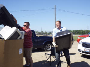 The event was open to all Logan County residents, and Rohlfs spent the most of her time checking identification, assuring that only local households were permitted to take advantage of the free offering. There were other rules that had to be followed as well. No more than five pieces per household, and TVs or computer monitors with broken screens or exposed CRT (Cathode Ray Tubes) were not accepted.
