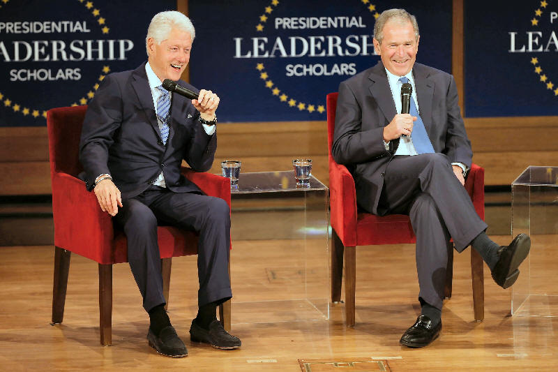 U.S. Presidents Bill Clinton (L) and George W. Bush