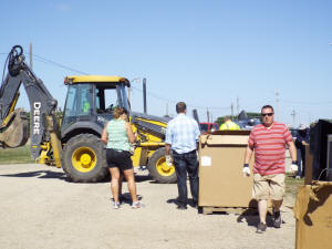 The event was open to all Logan County residents, and Rohlfs spent the most of her time checking identification, assuring that only local households were permitted to take advantage of the free offering. There were other rules that had to be followed as well. No more than five pieces per household, and TVs or computer monitors with broken screens or exposed CRT (Cathode Ray Tubes) were not accepted.