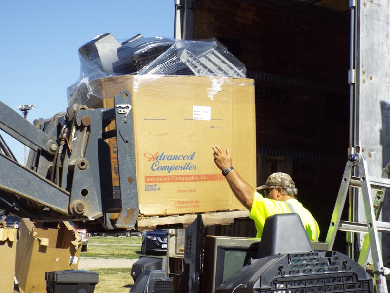 The city of Lincoln provided some labor for the event, including city employees who were paid to operate the front end loader that would stack the large cardboard cartons in the trailers as they were filled.