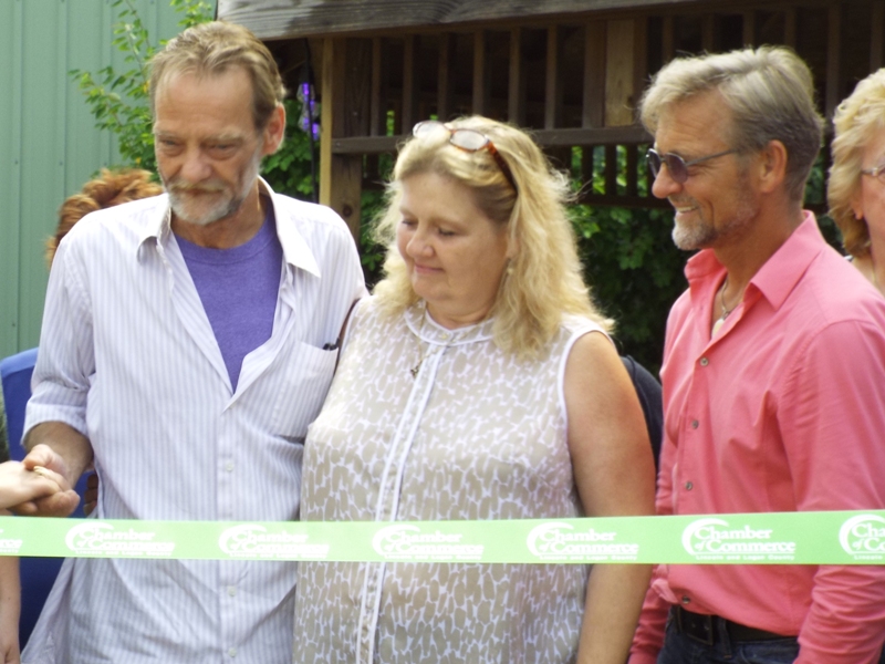 After a few posed pictures, Cathy Carlson snipped the ribbon on the