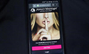 A photo illustration shows the Ashley Madison website displayed on a